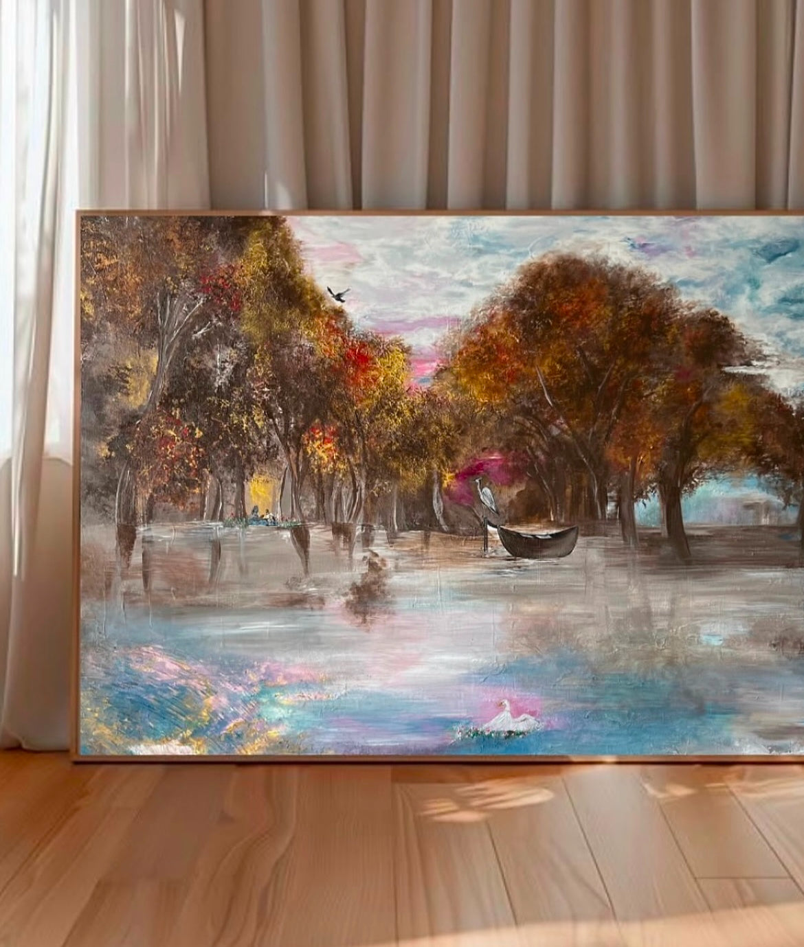 En lille bid af København fanget på lærredet - Fra de rolige stunder på mine utallige gåture langs søerne og i Fælledparken i København, er dette maleri “Fight for your dreams, and your dreams will fight for you” blevet til.
