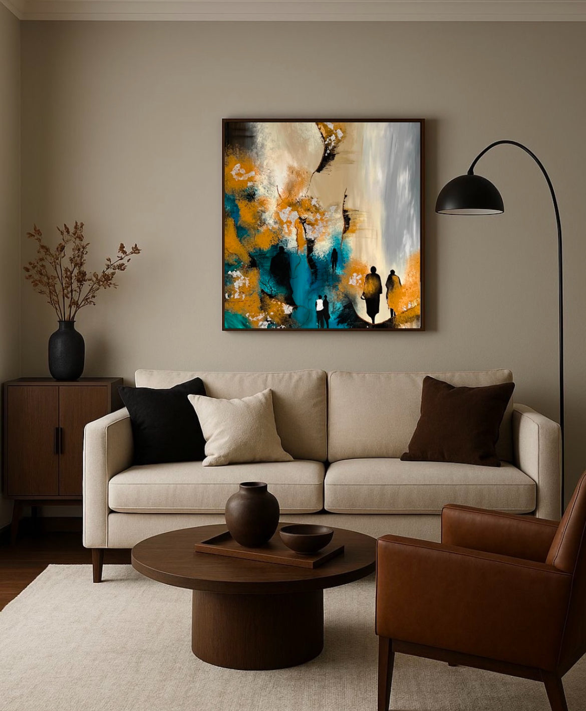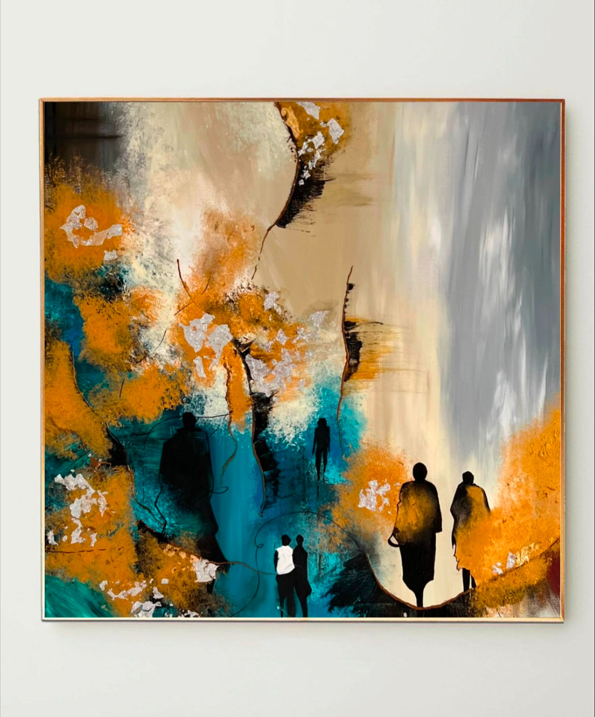 På flere af mine malerier kan man finde sorte silhuetter. De er ikke det direkte centrale i maleriet, men har mere en tilskuer rolle. De skal forståes sådan, at betragteren kan relatere sig til de sorte silhuetter og træde ind i maleriet igennem dem, og få en mere aktiv rolle som deltagende tilskuer til det liv/univers, som er illustreret.
